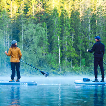 I høysesongen ligger SUP-brett og kanoer klare til bruk ved brygga, kun 2 minutter å gå fra gårdstunet. Velg mellom elvesafari oppover til Brusagafossen, eller dra utover på Langen for bading, piknik eller kanskje en tur i badstua.